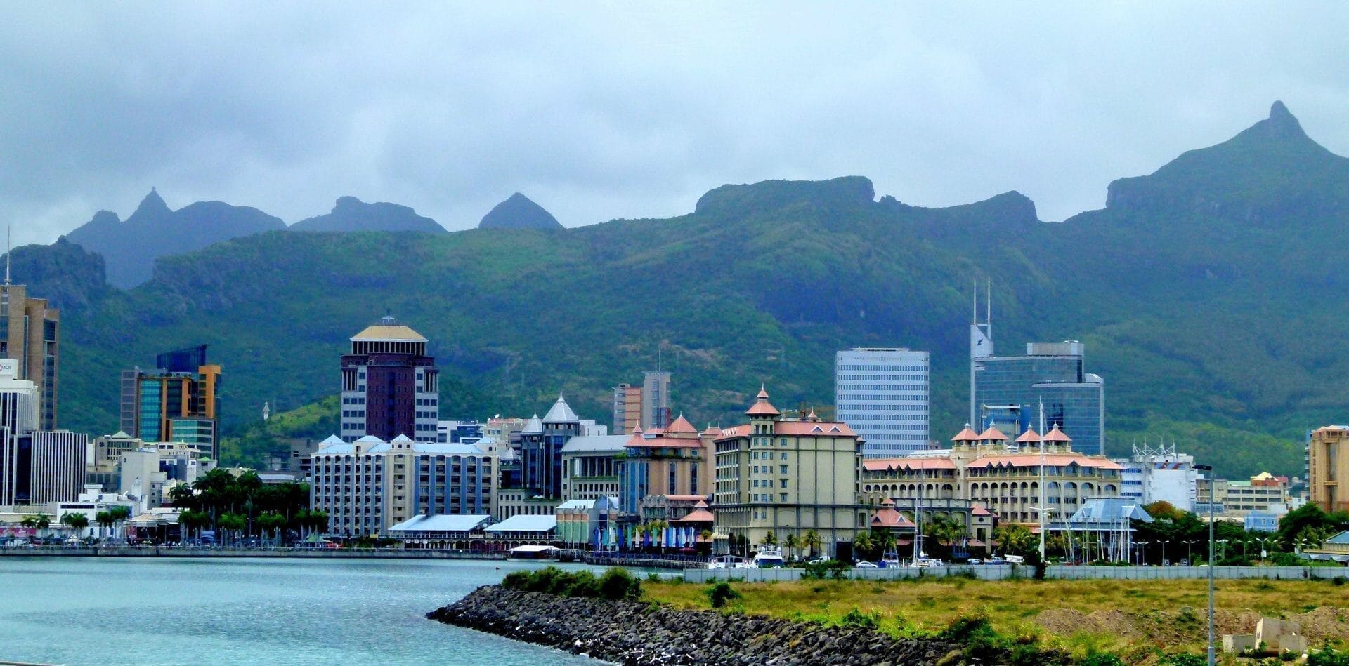 Op de centrale markt in Port Louis, de hoofdstad van Mauritius, vind je de meest uiteenlopende tropische vruchten in alle soorten, maten en kleuren. Het is hier altijd een gezellige drukte. De stad heeft een zeer moderne skyline met een aantal hoge torens. Op de achtergrond doemen de groene bergen op.