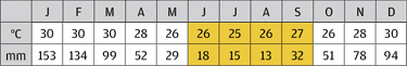 Wil je weten wat het klimaat en de weersverwachting is in Mozambique? Hieronder vind je de gemiddelde temperatuur en neerslag per maand, zodat je weet of je moet rekenen op regen of zonneschijn. Zo ga je altijd voorbereid op reis.
