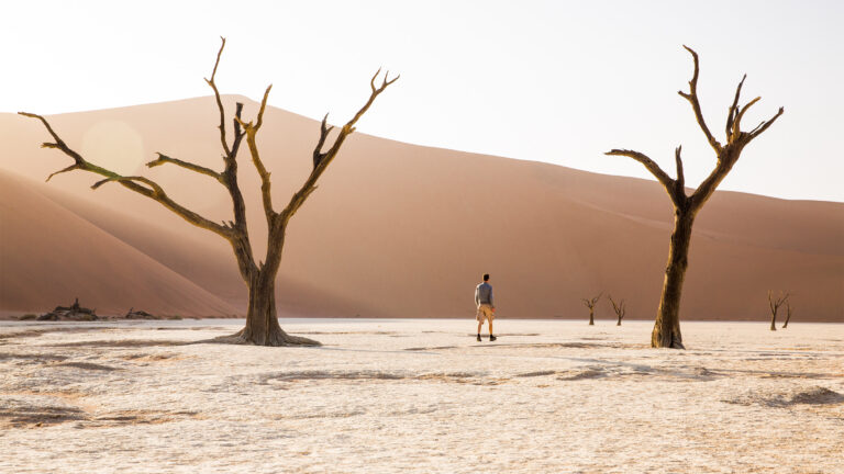 De Sossusvlei maakt deel uit van de Namib woestijn, een van de oudste en grootste woestijnen in de wereld. In de Sossusvlei liggen enkele van ’s lands bekendste bezienswaardigheden, waaronder de Dune 45 (beklim deze duin vroeg in de ochtend zodat je vanaf de top de zon mooi ziet opkomen), de Deadvlei met zijn dode bomen en de Sesriem Canyon. Een ballonvaart over de Sossusvlei is een unieke ervaring.
