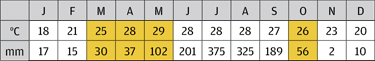 Wil je weten wat het klimaat en de weersverwachting is in Namche? Hieronder vind je de gemiddelde temperatuur en neerslag per maand, zodat je weet of je moet rekenen op regen of zonneschijn. Zo ga je altijd voorbereid op reis.