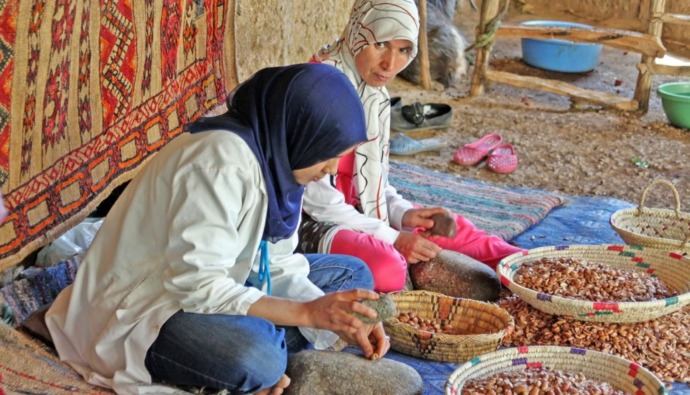 Arganolie wordt ook wel het vloeibare goud van Marokko genoemd. De olie is kostbaar: voor één liter olie is zestig kilo organvrucht nodig. In de vrouwencoöperatie Tiguemine Argan, tevens in de Ourikavallei, kun je met eigen ogen zien hoe het proces verloopt: van het breken van de vrucht tot het schillen en stampen van de noot. De olie is een stuk goedkoper dan in Nederland en met een aankoop ondersteun je de weduwen en gescheiden vrouwen van de coöperatie, Cooperative Feminine Tiguemine Argan, 15 kilometer van Essaouira (Route Marrakech).