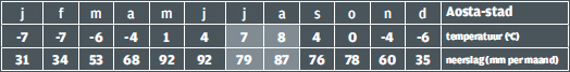 De gemiddelde temperatuur en neerslag in Valle d’Aosta: