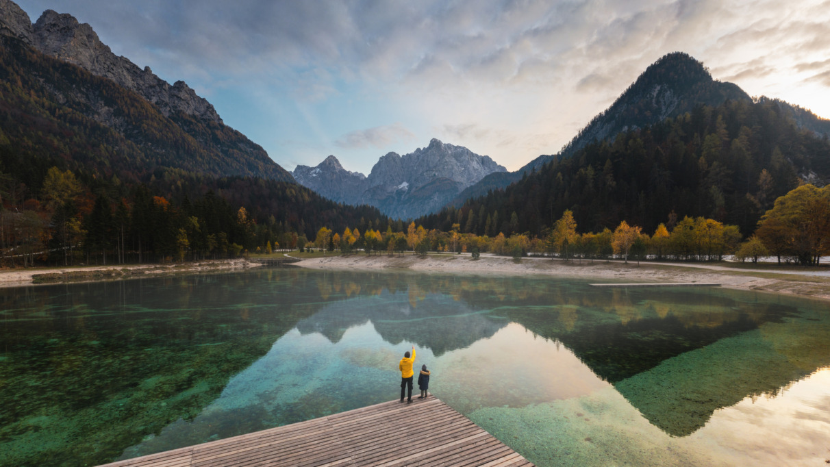 Het schilderachtige meer Jasna in Slovenië met een adembenemend uitzicht op de Julische Alpen, een must-visit bestemming voor natuurliefhebbers.