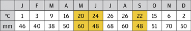 De gemiddelde temperatuur en neerslag in Bratislava: