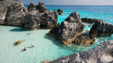 Turquoise water en indrukwekkende rotsformaties langs de kust van Bermuda.
