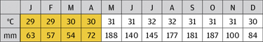 De gemiddelde temperatuur en neerslag in de Oost-Dominicaanse Republiek: