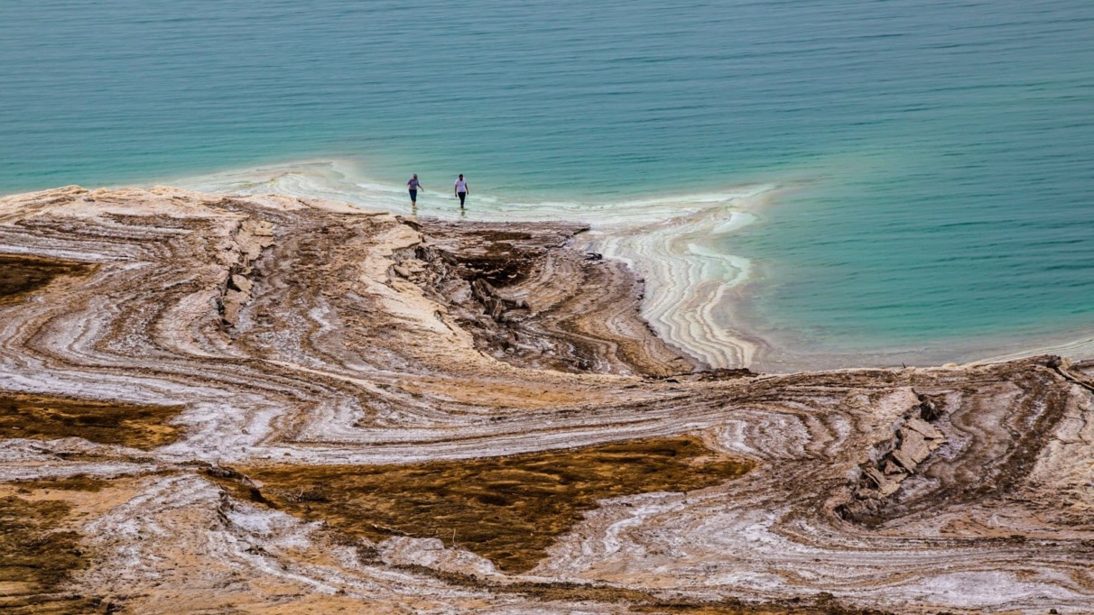De Dode Zee is het laagstgelegen meer ter wereld. De oostelijke oevers maken deel uit van Jordanië, het westen is van Israël en Palestina. De Dode Zee dankt zijn naam aan de enorme concentratie zout die het meer bevat. Zo veel dat je er zelfs in blijft drijven. Het water schijnt ook een geneeskrachtige werking te hebben voor verschillende huidaandoeningen.