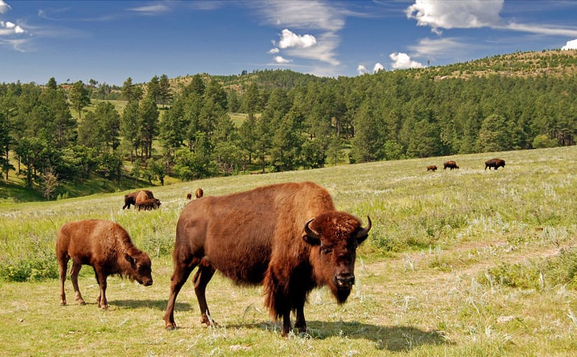 Ook in de Verenigde Staten kun je nog één worden met de ruige natuur. Je kunt bijvoorbeeld een paar nachten doorbrengen in de State Game Lodge, gelegen in de geïsoleerde Black Hills van South Dakota. De lodge grenst aan het Custer State Park, vlakbij de Great Plains: het territorium van o.a. de Noord-Amerikaanse bizon.