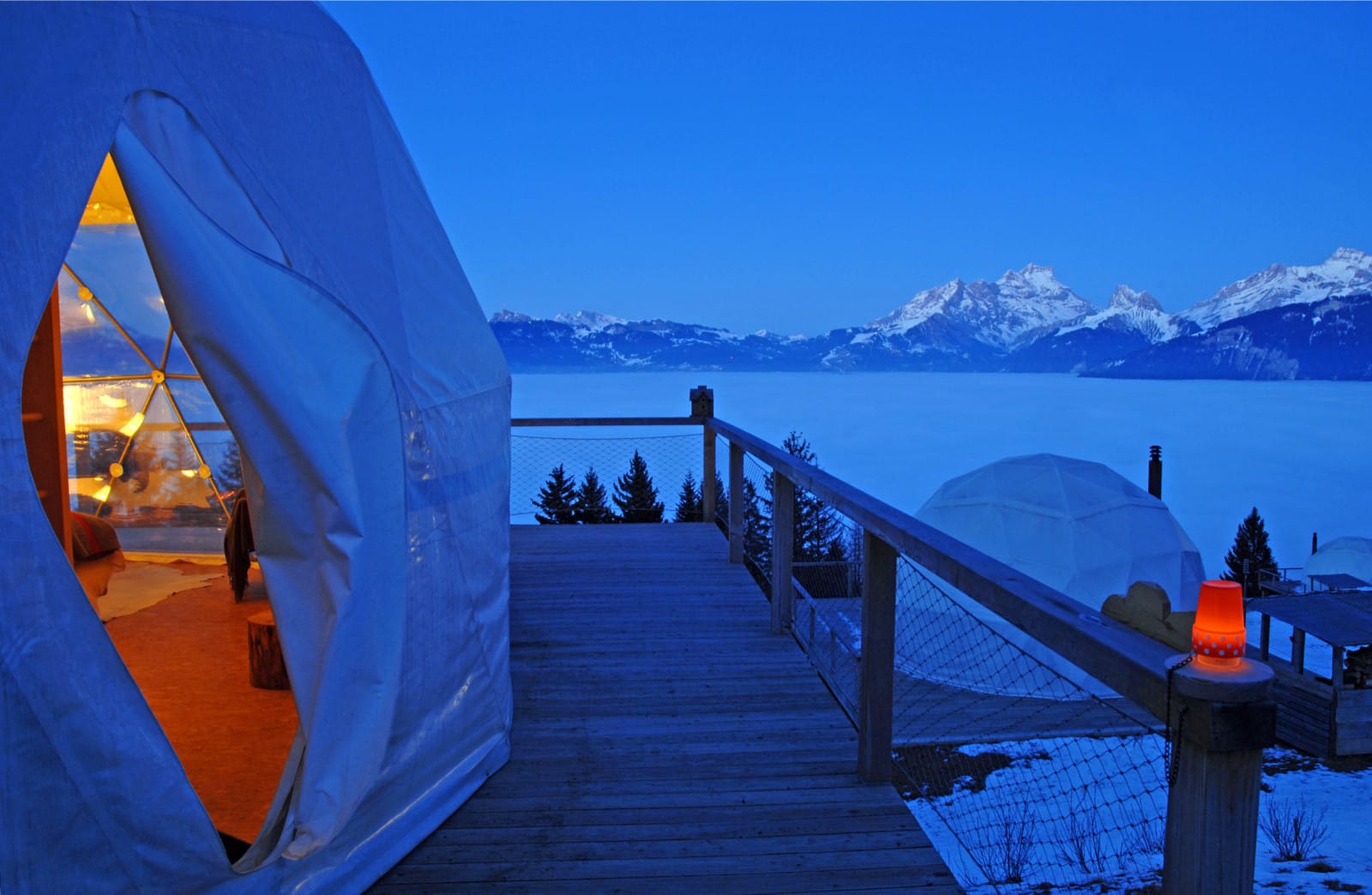 In het Whitepod hotel in de Zwitserse Alpen slaap je in je eigen ‘pod’, een halve bol die aan een ruimteschip doet denken. Elke pod is een royale hotelkamer die wordt verwarmd door een pelletoven. Door de ruimtelijke opstelling in het veld heb je veel privacy en geniet je van het adembenemende uitzicht. Je kunt kiezen voor zeven verschillende uitvoeringen, van knus tot luxe en van familie tot 007-chic.