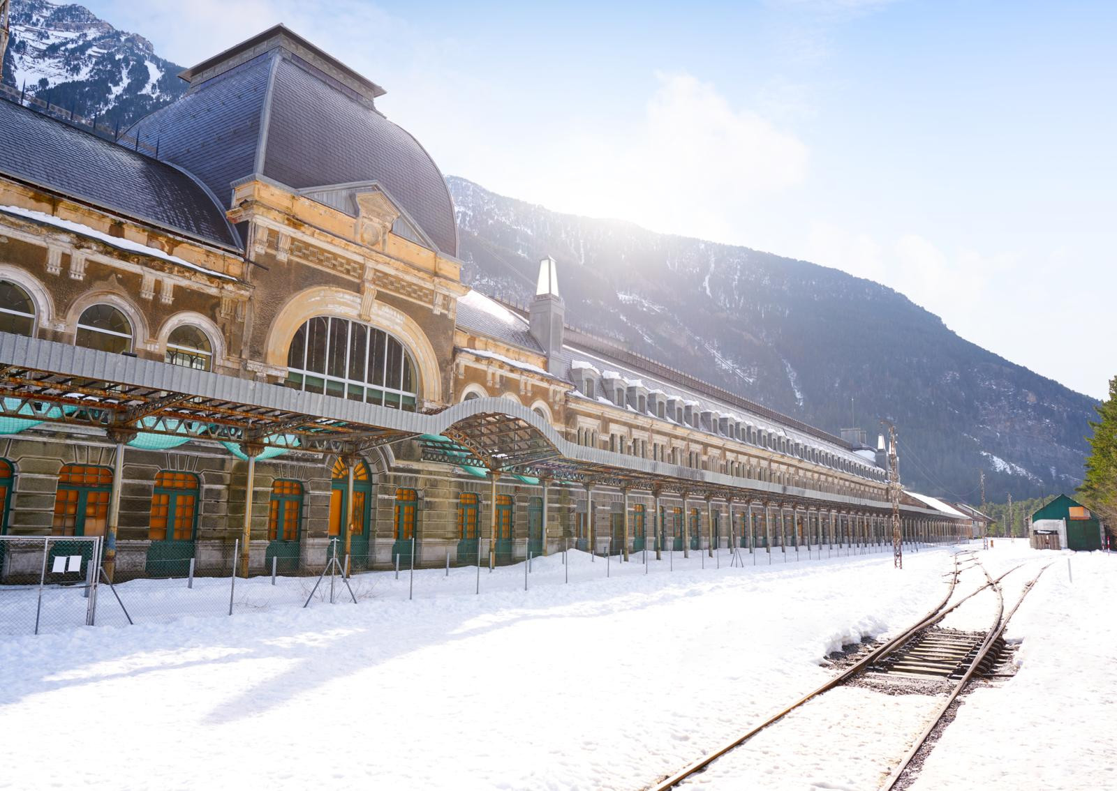 Het Estación de Canfranc, in het gelijknamige en amper zeshonderd inwoners tellende Spaanse dorp in de Pyreneeën, werd gebouwd om in de jaren twintig van de vorige eeuw een nieuwe verbinding tussen Frankrijk en Spanje te creëren. Het enorme complex omvatte niet alleen spoorwegfaciliteiten maar ook een hotel, restaurant, casino, ziekenhuis en zelfs stripclub. De internationale verbinding werd in 1928 geopend, maar raakte later in verval door politieke conflicten en de Tweede Wereldoorlog. Wat restte was een station van monumentale omvang aan the end of the line in Spanje – na Leipzig zelfs het grootste station van Europa. Na ruim vijftig jaar verval kun je hier sinds vorig jaar weer terecht in het luxe hotel Canfranc Estación van de Barceló-hotelgroep.