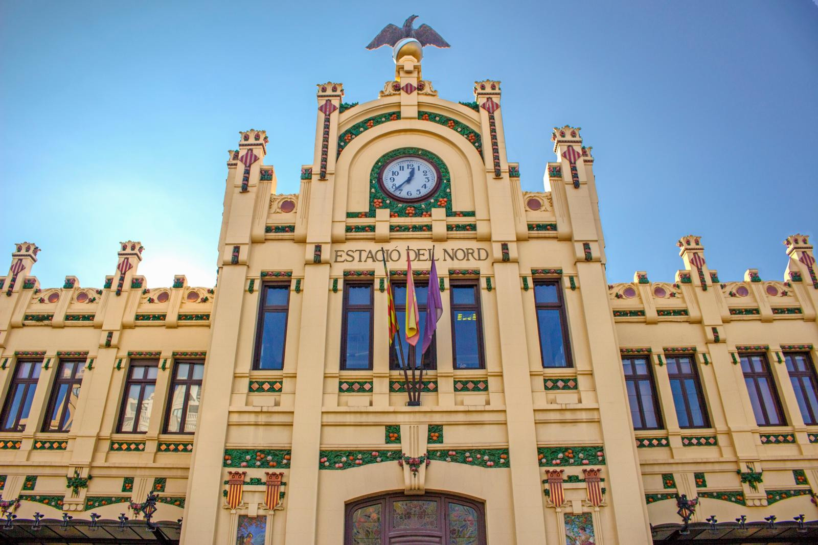Estación del Norte in Valencia is een modernistisch meesterwerk van architect Demetrio Ribes dat de Valenciaanse landbouw en in het bijzonder de sinaasappel eert. Binnen valt de uitbundige decoratie op, met smeedijzer- en houtwerk, gekleurd keramiek en hoogwaardige mozaïeken op de plafonds, vloeren en muren. Je vindt de boodschap ‘goede reis’ in allerlei talen en koopt je treinkaartje nog bij een van de kleine loketten in een immense eikenhouten wand. Ook de gevel, met plantmotieven, sinaasappels en oranjebloesems, is een plaatje. Bovendien ligt Ruzafa, een van de fijnste wijken van de stad, direct achter het station, met kleurrijke straten, pleintjes, boetiekjes en gezellige cafés.