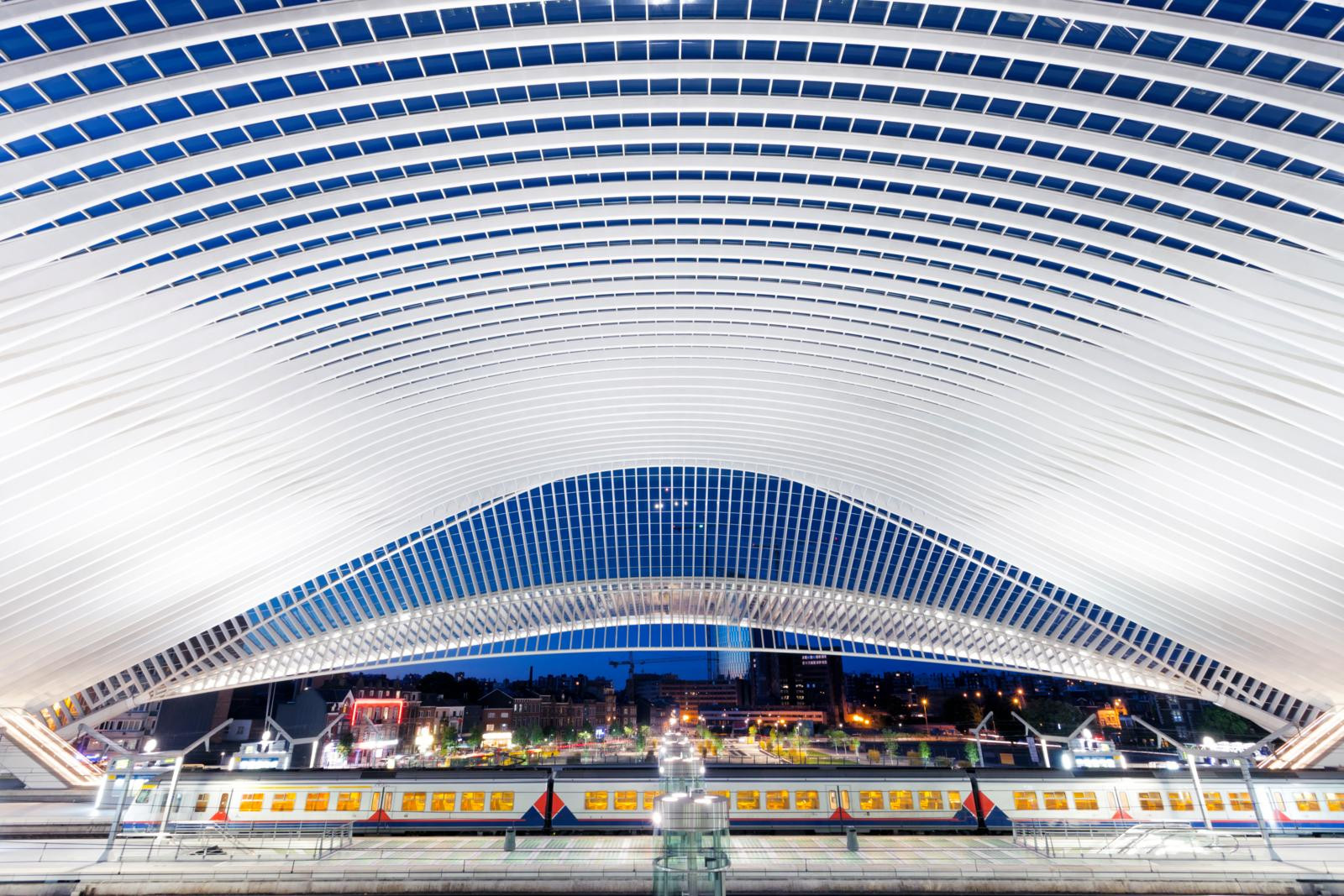 Een hypermoderne spoorwegkathedraal van staal, glas en wit beton, met een opvallend dak dat boven de perrons lijkt te zweven. Het moderne industriële ontwerp van de Spaanse architect Santiago Calatrava is een echte blikvanger en inmiddels, vijftien jaar na de inhuldiging, uitgegroeid tot hét symbool van Luik en het meest gefotografeerde monument van de Belgische stad. Het station is ook een voorbeeld van duurzaamheid: het dak is ontworpen om regenwater op te vangen en te hergebruiken, terwijl natuurlijk licht de perrons verlicht.