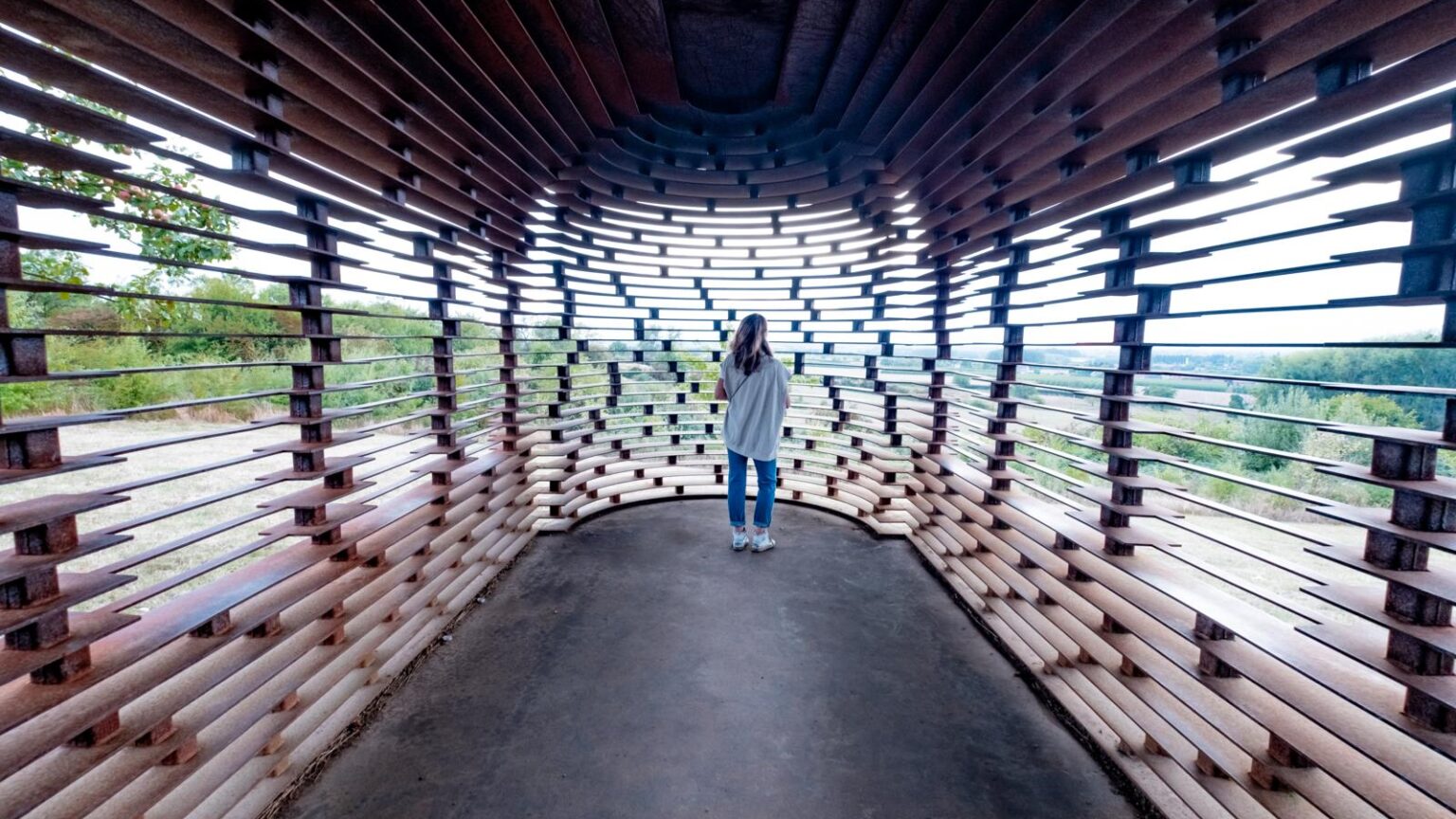 In Kerniel, een dorp ten noorden van Borgloon, creëerde Aeneas Wilder een ronde constructie van hout. Het 360-graden-uitzicht op een pittoresk dalletje wordt slechts onderbroken door houten latjes. De architect liet zich inspireren door het naastgelegen Klooster van Colen.