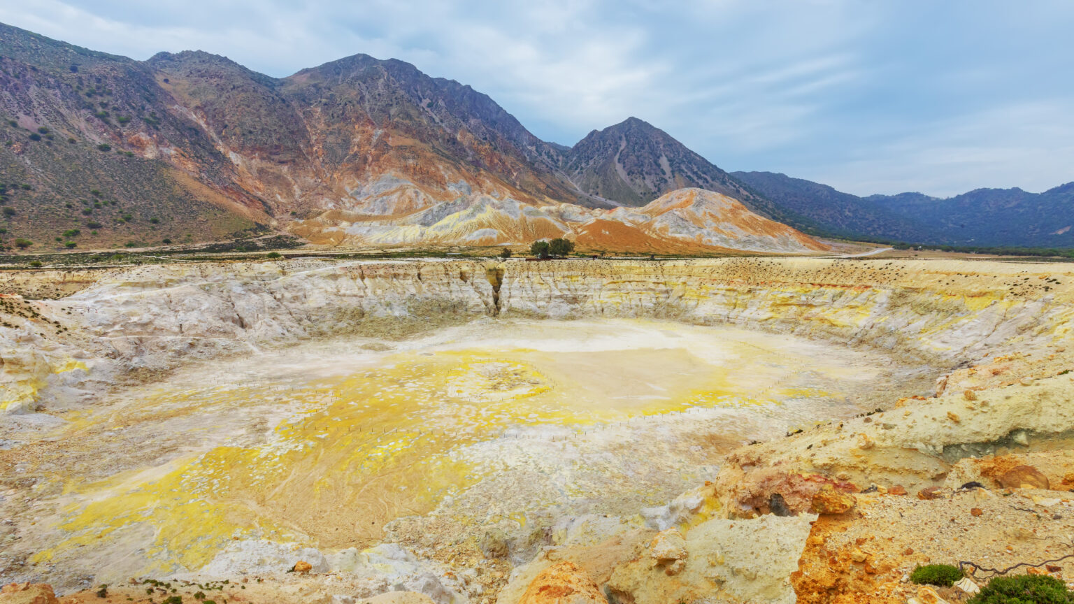 Nisyros is een slapende reus. Dit natuurwonder in de Dodekanesos is een van de jongste actieve vulkanen van Griekenland. In het hart van het eiland ligt de indrukwekkende Stefanos-krater, waar de aardbodem zindert van de hitte. De kleuren variëren van zwavelgeel tot goudbruin, afhankelijk van lichtinval en mineralensamenstelling. De vulkanische energie is voelbaar: damp stijgt op uit spleten en de geur van zwavel hangt in de lucht. Tegelijkertijd is het eiland vredig, met witte dorpen, stille kloosters en een ongerepte kustlijn.
