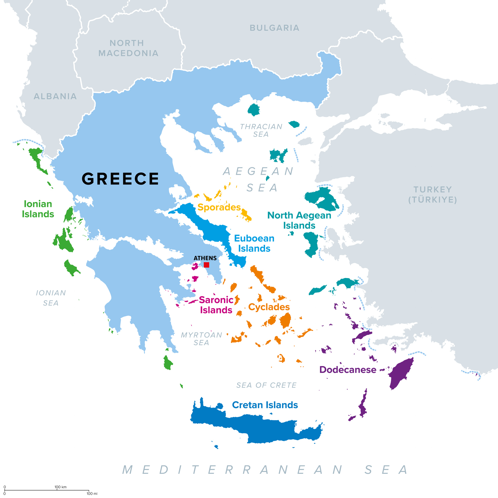 Griekenland telt zes grote eilandengroepen, evenals het losliggende Kreta. Elke eilandengroep heeft een eigen gezicht: