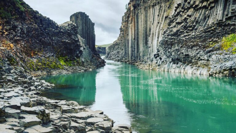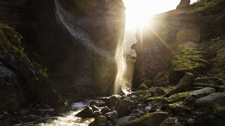 Een twee kilometer lange kloof, met talloze riviertjes die je te voet moet doorkruisen, om tot slot uit te komen bij een verborgen waterval in een grot. Het klinkt haast te mooi om waar te zijn, en toch is dat precies wat Stakkholtsgjá voor je in petto heeft. De kloof bevindt zich niet ver van de ringweg, maar de F249 die ernaartoe loopt wordt meerdere malen onderbroken door beekjes en riviertjes. Een terreinwagen is dus noodzakelijk.