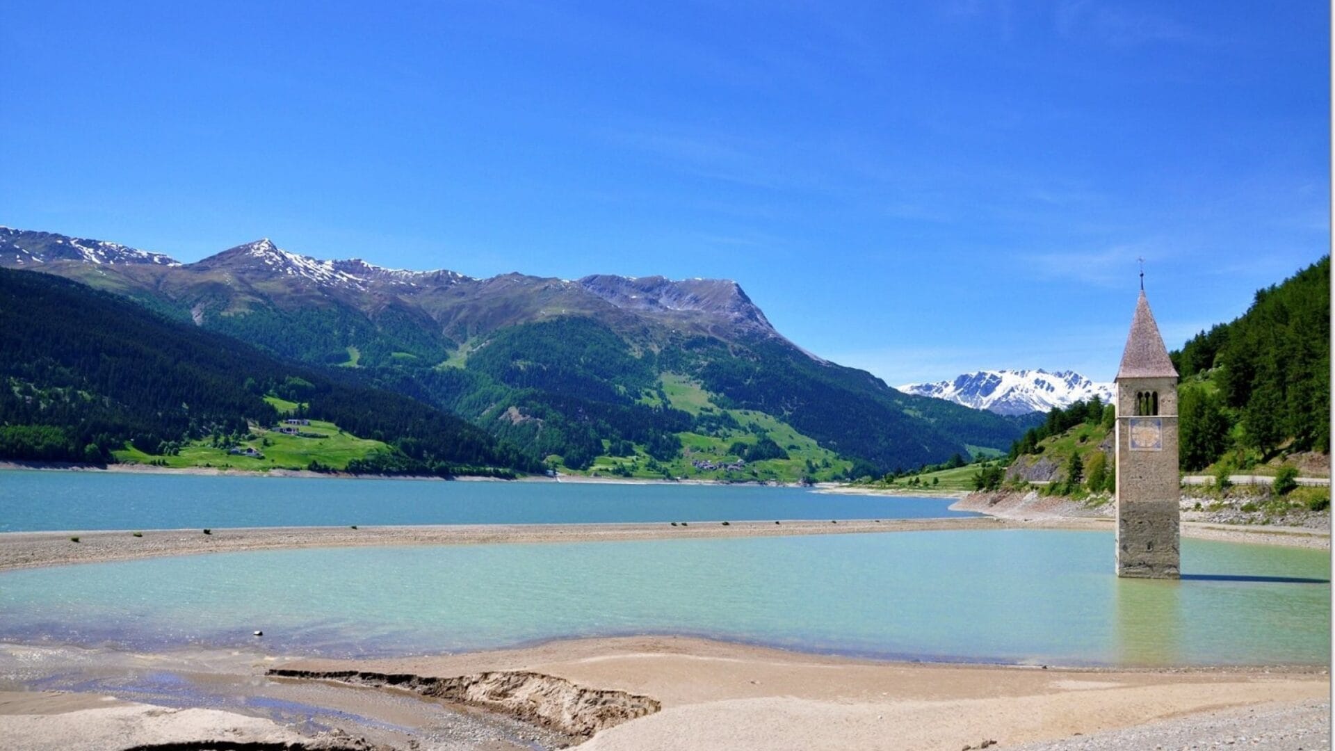 Een grimmige sfeer zo aan het Reschenmeer. Het dorpje Graun werd gesloopt om een stuwdam aan te leggen voor energieopwekking. Graun kwam onderwater te staan, alleen de kerktoren van het dorp bleef overeind en steekt nu boven het water uit. Daarnaast komen toeristen naar Trentino om te genieten van de Dolomieten. In de zomer door een stevige wandeling en in de wintermaanden door de wintersport. Trente is de hoofdstad van deze Noord-Italiaanse regio.