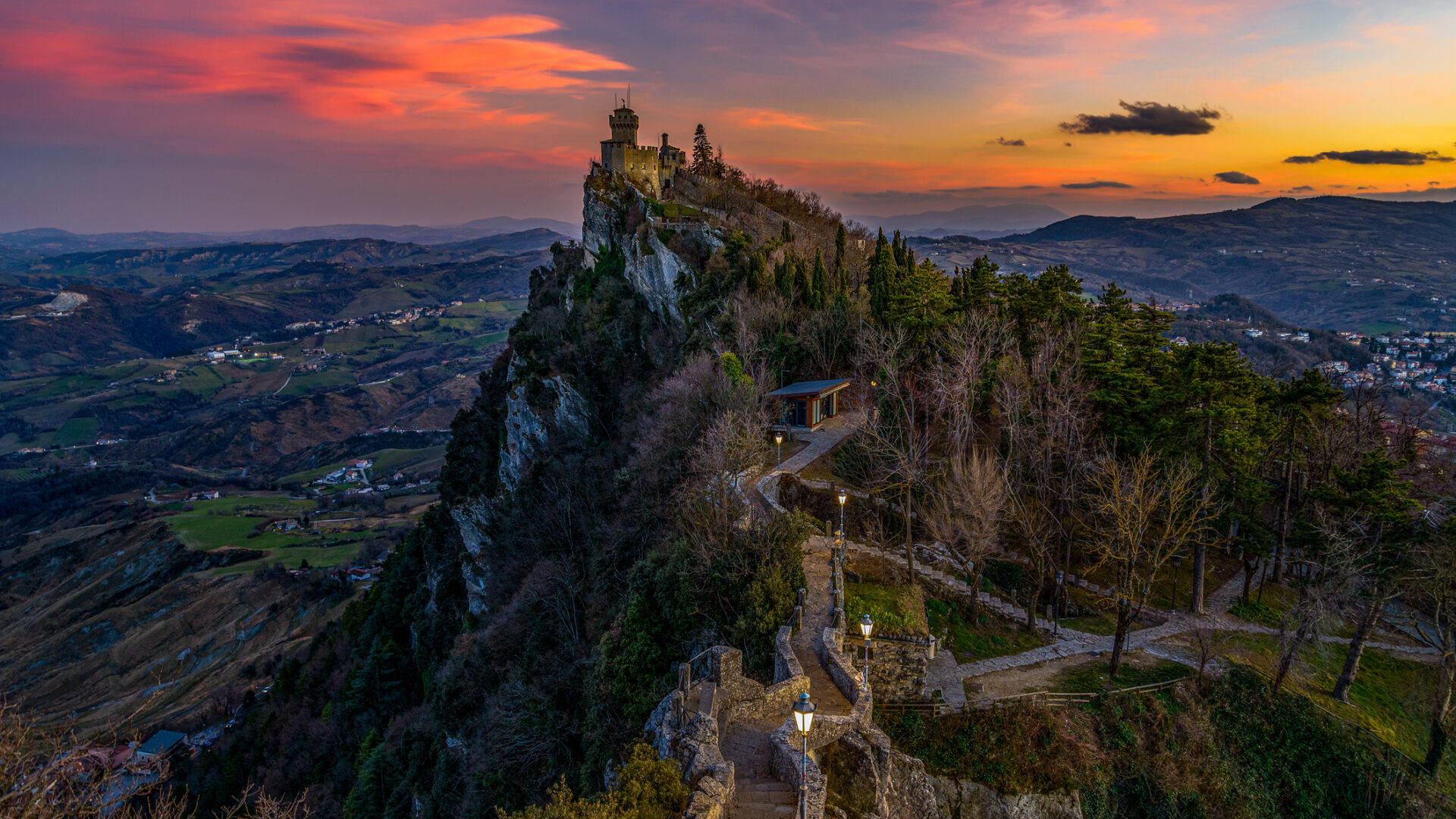 Het landschap van San Marino wordt gekenmerkt door de ruige bergen van de Apennijnen en het spectaculaire uitzicht vanaf de toppen van de Monte Titano. Dit Unesco-werelderfgoed biedt een unieke mix van natuurlijke schoonheid en historische bezienswaardigheden. De drie iconische torens – Guaita, Cesta en Montale – staan symbool voor de onafhankelijke geest van het land en zijn een must-see voor elke bezoeker. De middeleeuwse straatjes en het historische centrum brengen je terug naar een tijd van ridderlijkheid en tradities.