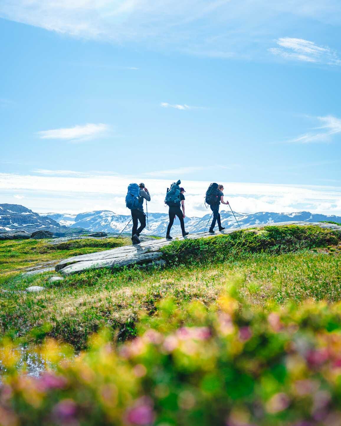 Mike vertelt: 'Rondom de welbekende Trolltunga-hike zijn ook tal van trektochten mogelijk in Noorwegen die je leiden over de bergplateaus boven de fjorden. Tussen de berg op de achtergrond en de wandelaars is een enorm steile daling tot aan zeeniveau.' Volg Mike op Instagram.
