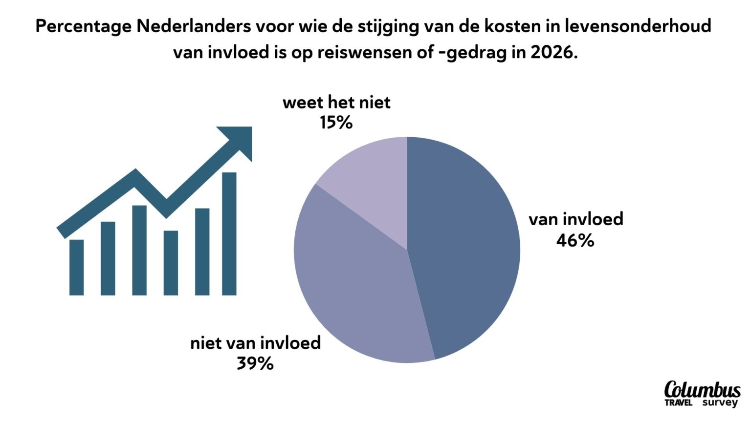 Die prijsbewustheid staat niet op zichzelf. In onze survey geeft 46% van de Nederlandse reizigers aan dat de stijgende kosten van levensonderhoud invloed hebben op hun reiswensen en -gedrag, tegenover 39% bij wie dat (nog) niet het geval is. Reizen blijft een prioriteit, maar wordt doordachter gepland. Dat vertaalt zich in flexibiliteit: buiten het hoogseizoen reizen, aanbiedingen combineren, alternatieve bestemmingen kiezen en kritisch kijken naar wat echt waarde toevoegt aan de reis.