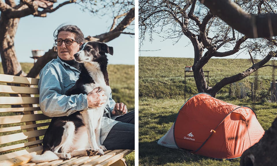 ‘Omdat er van die oude fruitbomen staan, kun je gemakkelijk een hangmat opknopen. We hebben nu al twee zomers gehad die bloedjeheet waren. Als je in je hangmatje in de schaduw hangt, met een boekje erbij, is dat heerlijk. Elders in de tuin staat een ligbad. Stook er een vuurtje onder en je kunt ’s avonds laat naar de sterrenhemel kijken. Nou, is dat niet lekker? Verder is er een plek om een kampvuur te maken en lopen er kippen rond − voor mij heel normaal, maar voor veel gasten klaarblijkelijk hartstikke interessant. In de ochtend trakteren de kippen op een vers eitje.’ − € 8 per nacht, campspace.com