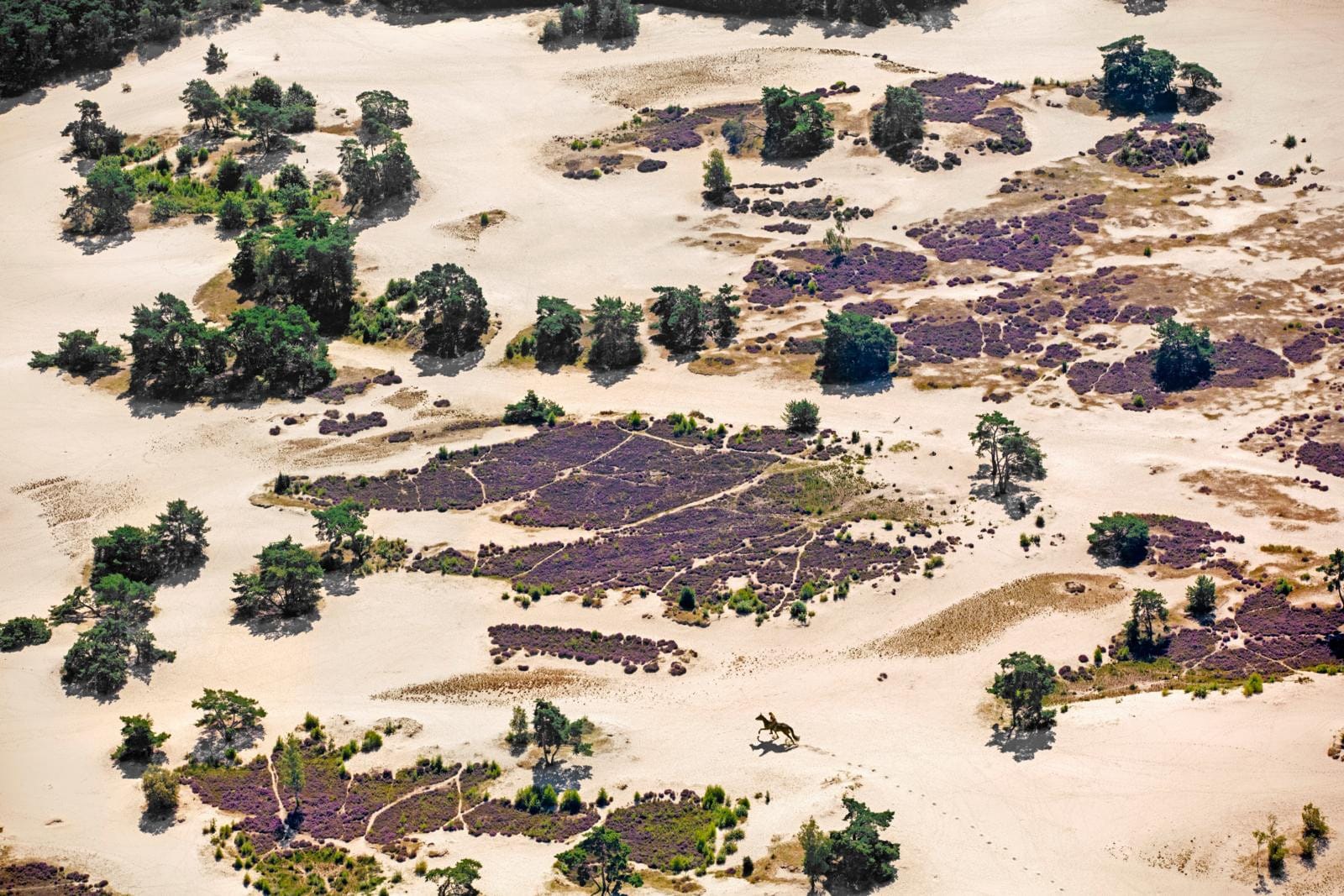 Aan de andere kant van de spoorlijn van Utrecht naar Amersfoort ligt nog een juweel van een natuurpark: Soester Duinen. Het gebied heeft een oppervlakte van maar liefst vijfhonderd hectare en kenmerkt zich door omvangrijke zandverstuivingen. Voor het ontstaan van de Soester Duinen moeten we zo’n tienduizend jaar terug, naar een van de ijstijden: het Weichsalien. De gemiddelde temperatuur lag toen vlak onder het vriespunt. Omdat er weinig groeide kon blootliggend zand eenvoudig door de wind worden opgepakt. In de luwte van de Utrechtse Heuvelrug werd het zand over het landschap afgezet. De bossen die er uit de grond schoten hadden lange tijd de overhand. Maar door intensieve begrazing en houtkap kreeg de wind in de late middeleeuwen opnieuw vrij spel. Het dekzand verstoof en zo ontstonden de stuifzandgebieden die je ook vandaag de dag nog tegenkomt op de Soester Duinen. Nadat de schapen van de Utrechtse Heuvelrug verdwenen raakten de stuifzanden weer deels begroeid. Bovendien werden in de twintigste eeuw grove dennen aangeplant. Zo zie je maar: de natuur in Nederland, en de Utrechtse Heuvelrug in het bijzonder, is continu aan verandering onderhevig. Er ontstaat daardoor een spannend stukje natuur dat altijd weet te prikkelen. Of je het gebied nou te voet, op de fiets, in de auto of op de rug van een paard doorkruist.