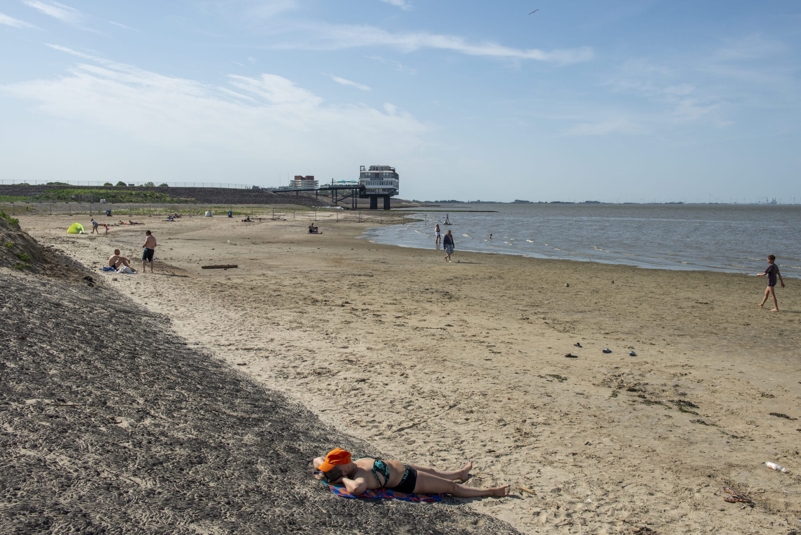 De buitendijkse ruimte bij Delfzijl werd omgetoverd tot stadsstrand. Foto: Getty Images