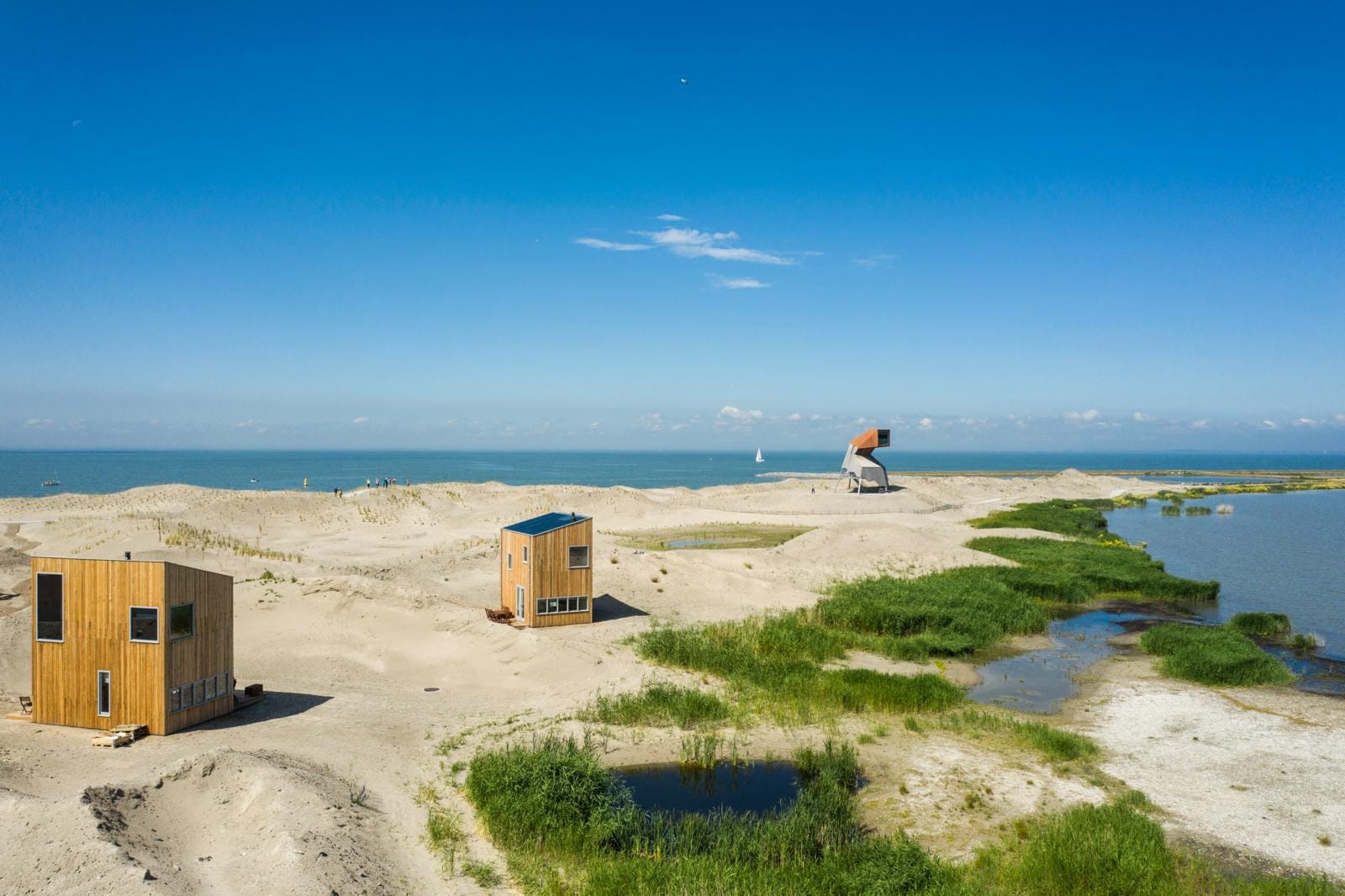 De vijf natuureilanden van de Marker Wadden in Flevoland zijn niet toegankelijk voor mensen, op één eiland na. Hier vind je een handjevol gebouwen voor beheer en toezicht, én vier vakantiehuisjes. De houten eilandwoningen zijn luxe, comfortabel en toch duurzaam ingericht. Rust en stilte zijn in deze natuuroase gegarandeerd. De opbrengst van de verhuur gaat voor honderd procent terug naar de natuur.