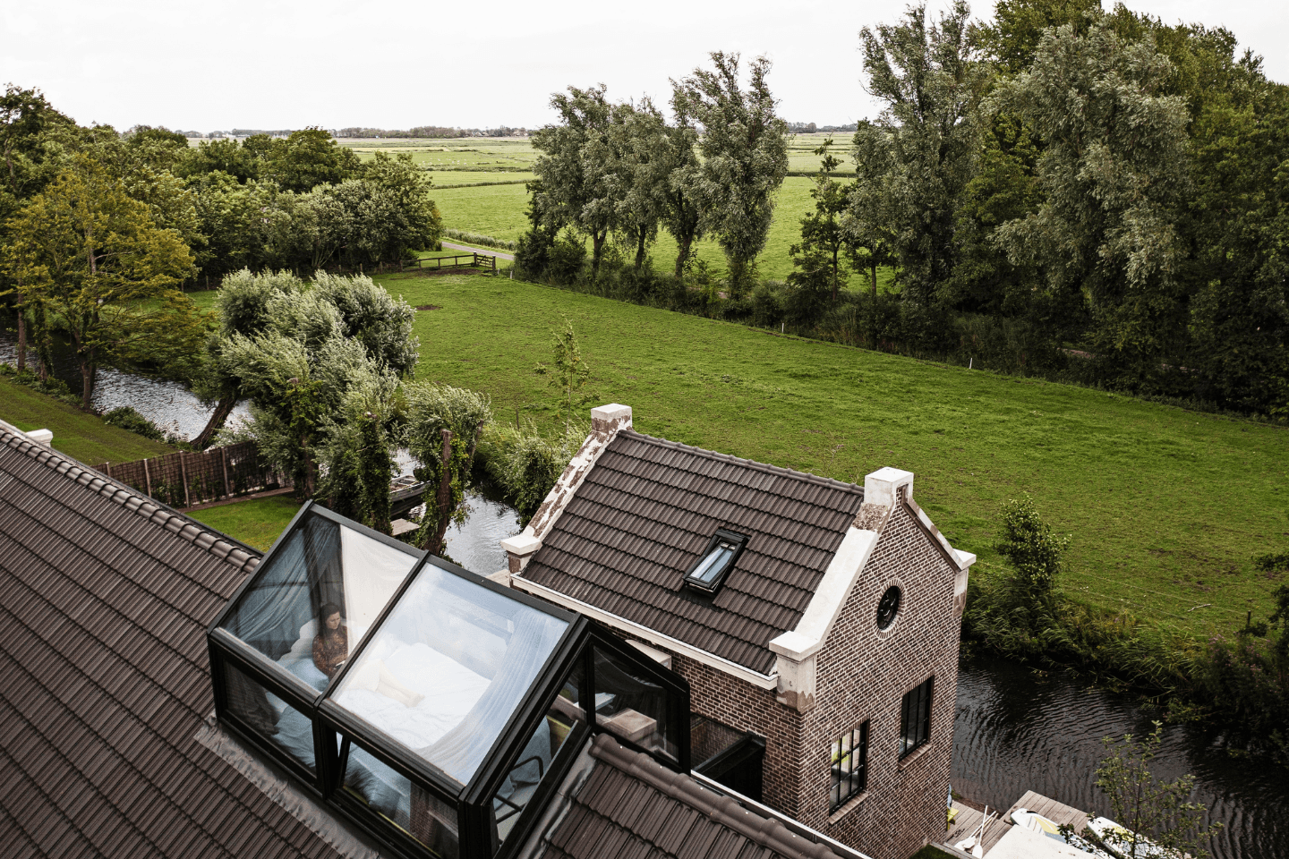 Na de industriële revolutie, aan het eind van de negentiende eeuw, werden op veel plaatsen in Friesland zuivelcoöperaties opgericht. In plaats van afzonderlijke en kostbare fabrieken te stichten, brachten de boeren uit de streek hun melk naar één locatie. De Dongeradelen, een kaascoöperatie in Lioessens, bleef tot 1973 in gebruik en kent een roemrucht verleden. Na de sluiting werd de oude kaasfabriek voor meerdere doeleinden gebruikt. Zo zat er een witlofkweker en een konijnenfokker in. De laatste en tevens beruchtste bewoner heette Henkie Hennep. Volgens een populair dorpsverhaal wist deze hennepteler op slinkse wijze uit de handen van de politie te blijven door aan de achterkant van het pand weg te varen als de agenten op de voordeur bonkten. Nadat Henkie Hennep definitief zijn biezen pakte, was de kaasfabriek rijp voor de sloop. Johan en Minne, twee ondernemende broers uit Lioessens, konden dat niet aanzien. Met dank aan investeerders werd het industriële pand tussen de landerijen nieuw leven ingeblazen en omgetoverd tot Suvelfabryk. Binnenin werden maar liefst dertien piekfijne vakantieappartementen gerealiseerd. Hoewel ze in grootte variëren − sommige zijn geschikt voor koppels, andere voor groepen tot acht personen − hebben ze één element gemeen: in alle ruimtes is het industriële karakter bewaard gebleven. Wij kregen een appartement toegewezen in de nok van het gebouw, met een groot dakraam. Nooit geweten dat slapen onder de sterrenhemel zo comfortabel kon zijn! Vanaf € 148 per nacht voor twee personen.