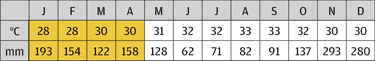 Wil je weten wat het klimaat en de weersverwachting is aan Silver coast? Hieronder vind je de gemiddelde temperatuur en neerslag per maand, zodat je weet of je moet rekenen op regen of zonneschijn. Zo ga je altijd voorbereid op reis.