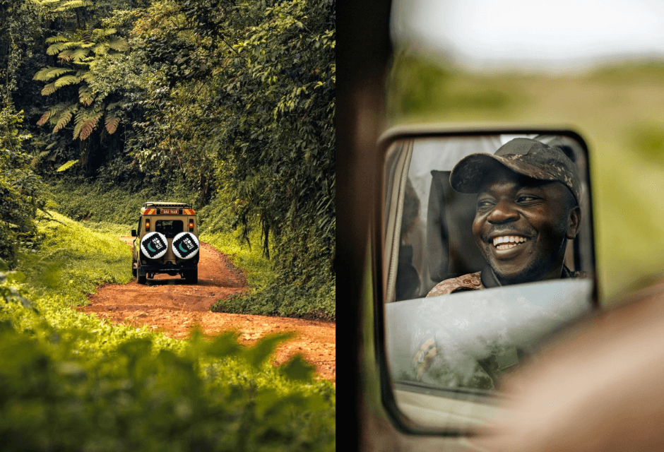 De route tussen het Mutandameer en Queen Elizabeth National Park behoort tot de mooiste van het land. Je rijdt over rode zandwegen, passeert het Bunyonyimeer en doorkruist Bwindi Impenetrable National Park. Globale route: Kisoro – richting Kabale – afslaan bij Oost – Bwindi – Kihihi – Ishasha.