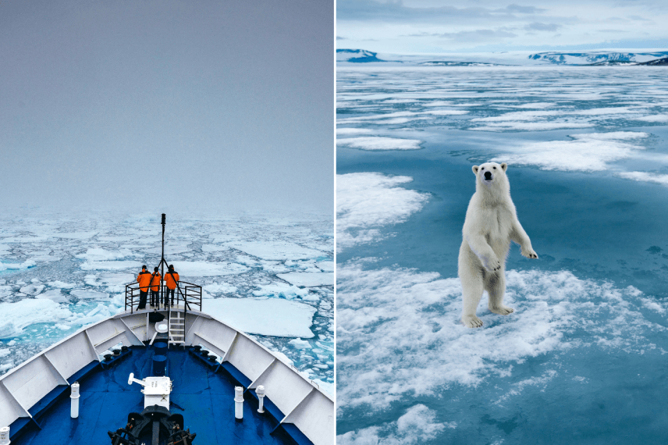 Tijdens een gletsjersafari over de Isfjorden, de op één na langste fjord van de Spitsbergen-archipel, spot je met wat geluk niet alleen walrussen, papegaaiduikers en blauwe vinvissen, maar ook kalvende gletsjers: daar waar een gletsjer in het ijskoude water eindigt, breken grote stukken met donderend geraas af.