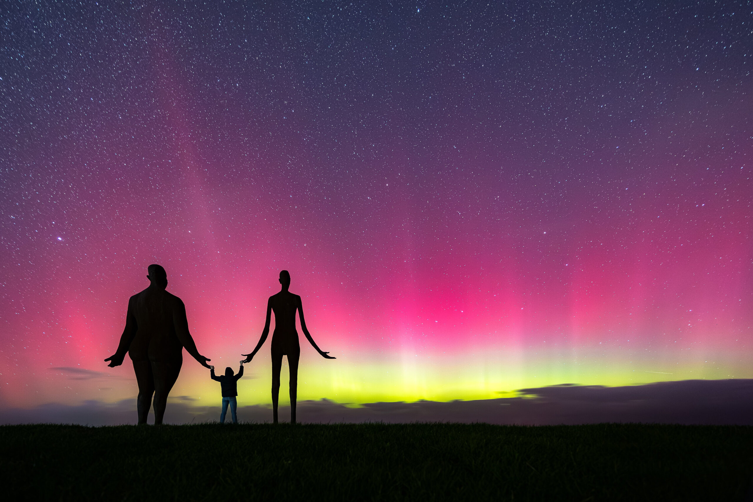 Arjan vertelt: 'Kijk en geniet! Op 5 november 2023 heb ik voor het eerst het noorderlicht in Nederland vast weten te leggen. Die avond kwamen er al snel meldingen binnen dat het noorderlicht in Nederland fotografisch zichtbaar bleek te zijn. Rond negen uur 's avonds ben ik dan ook in de auto gestapt en naar een vooraf gekozen locatie gereden, het kunstwerk 'Wachten op hoog water' van Jan Ketelaar op de zeedijk bij Holwerd. Ik had deze compositie al heel lang voor ogen, het moest een pakkend en vooral origineel beeld worden. Tot die avond was er namelijk nog niet eerder iemand geweest die er een noorderlichtfoto had gemaakt. Nadat ik bij aankomst de compositie had bepaald, vervolgens veel foto's van helaas zwak noorderlicht had geschoten en ik tegen de klok van elf, toch wel een beetje teleurgesteld op het punt stond om naar huis te gaan, zag ik plots lichtzuilen/pilaren aan de hemel verschijnen. Toen ik vervolgens een foto maakte, werd ik getrakteerd op een fantastisch schouwspel dat ongeveer een klein half uur aanhield. Om de compositie nog net iets sterker te maken ben ik zelf tussen de beelden gaan staan en heb ik door middel van de tienseconden-zelfontspanner diverse opnames gemaakt. Al met al was het een avond om nooit te vergeten!' Volg Arjan op Instagram.