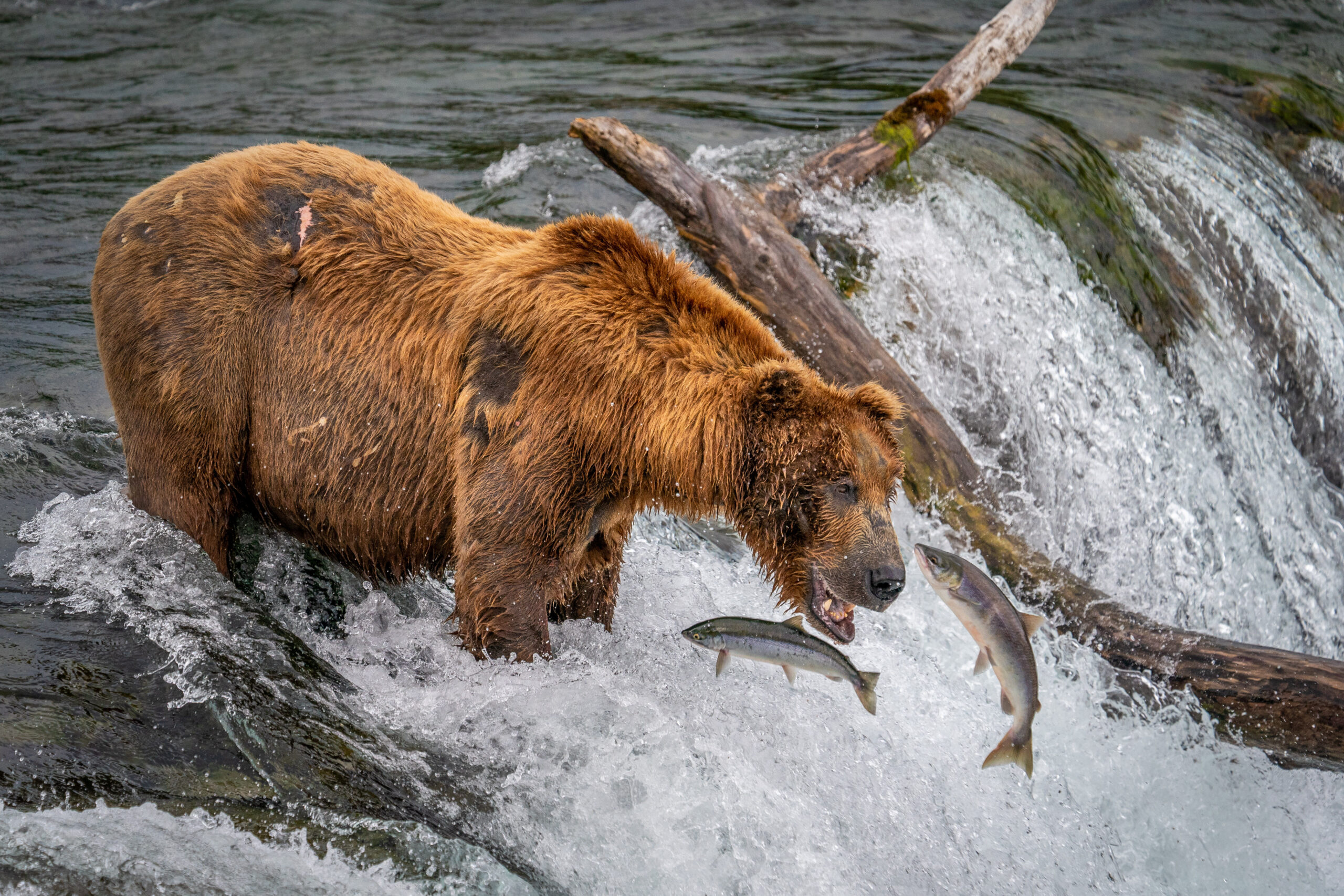Jessi vertelt: 'In de zomer heb je de trek van de zalm. In Katmai, Alaska vliegen de zalmen letterlijk voor en tegen het hoofd van de talrijke beren, die zich dan ook volproppen met deze vissen.' Volg Jessi op Instagram.