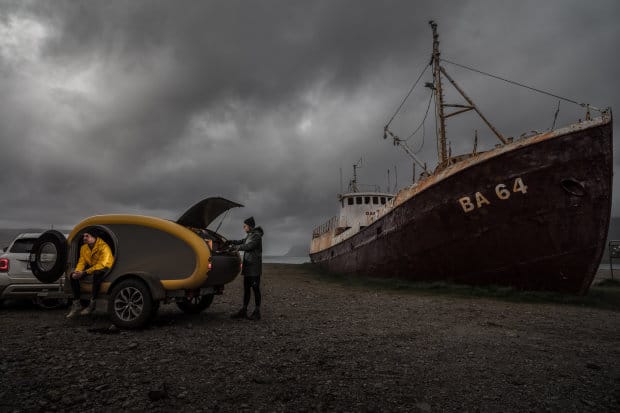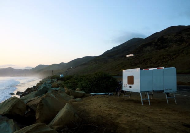 Wij zijn groot fan van Hitch Hotel, een Amerikaans alternatief voor de doorsnee caravan. Je bevestigt deze uitschuifbare kubus (173 x 89 cm) – zonder wielen – boven op je trekhaak. Tijdens het rijden kun je er bijvoorbeeld je kampeerspullen en fiets in opbergen. En als je eenmaal bij je slaapplek bent aangekomen, gebruik je de uitschuiffunctie om een slaapcompartiment voor twee à drie personen te creëren. Hitch Hotel heeft ramen, kan op slot en beschikt over handige extraatjes zoals een USB-aansluiting. Huren kan vooralsnog alleen in het Californische Pleasant Hill, vanaf € 83 per nacht, outdoorsy.com. Kijk voor meer informatie op hitchhotel.com