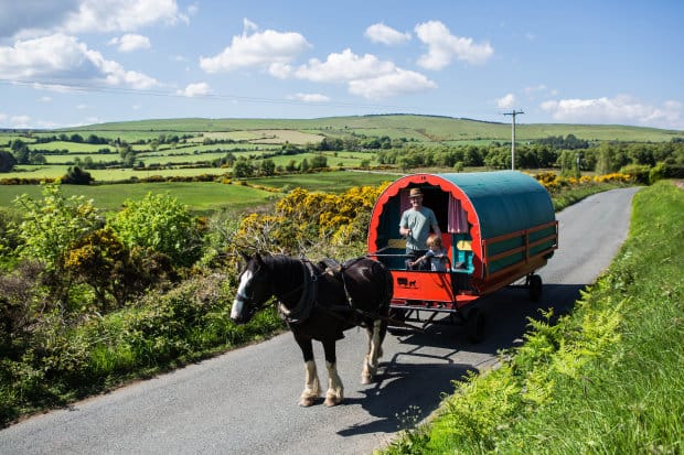 Slow travel in optima forma: met één pk en een zigeunerwagen door het Oost-Ierse platteland hobbelen. Bij Clissmann Horse Caravans kun je diverse paard-enwagentochten in en rondom Nationaal Park Wicklow Mountains boeken. Overdag verken je de omgeving en ’s avonds slaap je op boerenerven of op campings in de buurt. Voor vertrek volg je een korte training, waarna je zelf de teugels in handen krijgt. De kleurrijke en ietwat kitsche zigeunerwagens zijn voorzien van vier bedden en een keuken, vanaf € 580 voor drie nachten en vier personen, clissmannhorsecaravans.com