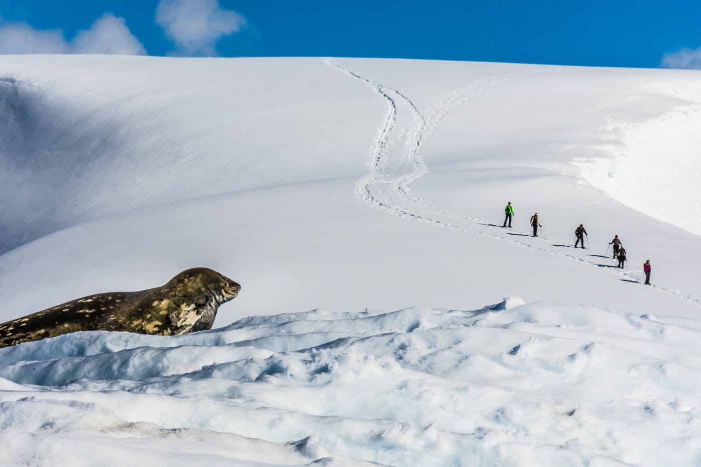 Communitylid Thijs van den Burg: 'Ondanks de zuidelijke ligging en de hoeveelheid sneeuw, ijs en gletsjers, is een bezoek aan Antarctica qua weer in de zomer (onze winter natuurlijk) prima te doen. Met temperaturen die tot 10 graden kunnen komen (dat het te warm wordt is ook daar helaas goed te merken), is het vaak warmer dan in Nederland. In de nacht echter daalt het kwik rap naar de zuidelijke kant van de thermometer. Een nacht op het ijs kamperen is dan ook wel wat afzien, maar met een dubbele slaapzak en goede kleding is dit een onvergetelijke ervaring. Als je met het juiste schip meegaat onderneem je genoeg uitstapjes (mits het weer en de omstandigheden het toelaten) om deze witte wereld, het zevende continent, intens te beleven. Een wandeltocht van een uur of drie brengt je op plakken waar maar een handvol mensen is geweest. Hier en daar enkele zeehonden als toeschouwer, opwarmend in de zon in deze witte sneeuw wereld.'