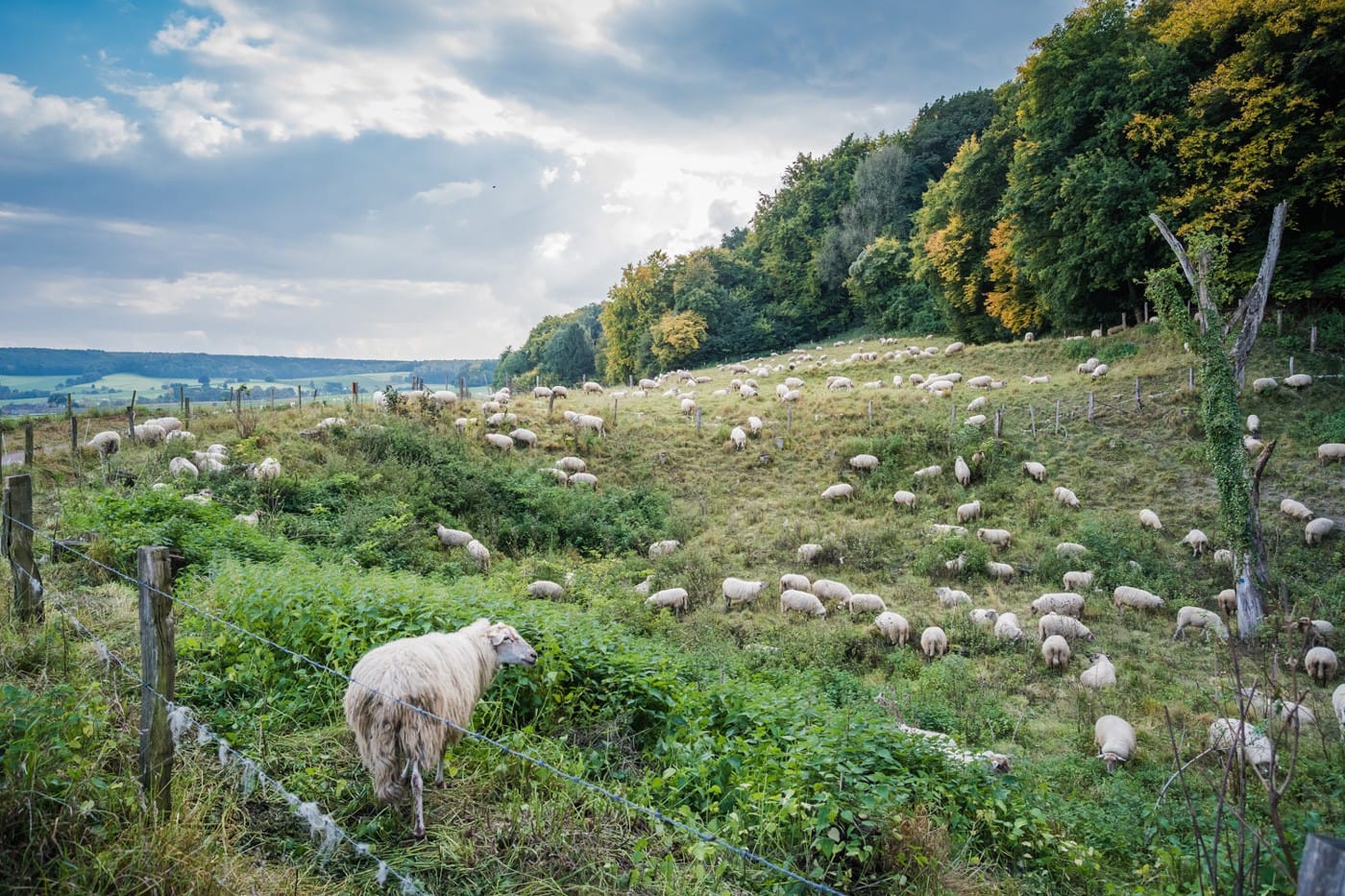 Gedurende twee weken zag ik hoe de bomen langzaam gingen verkleuren. Op een wandeling langs de bosrand stuitte ik op deze schaapskudde. Ook in Limburg is het inzetten van kuddes een veel gebruikte en milieuvriendelijke vorm van landschapsbeheer. Ik vond het een prachtig plaatje en legde het vast om het aan jullie te laten zien. Geniet grenzeloos met mij mee van dit prachtige gebied zo lekker dichtbij huis!'