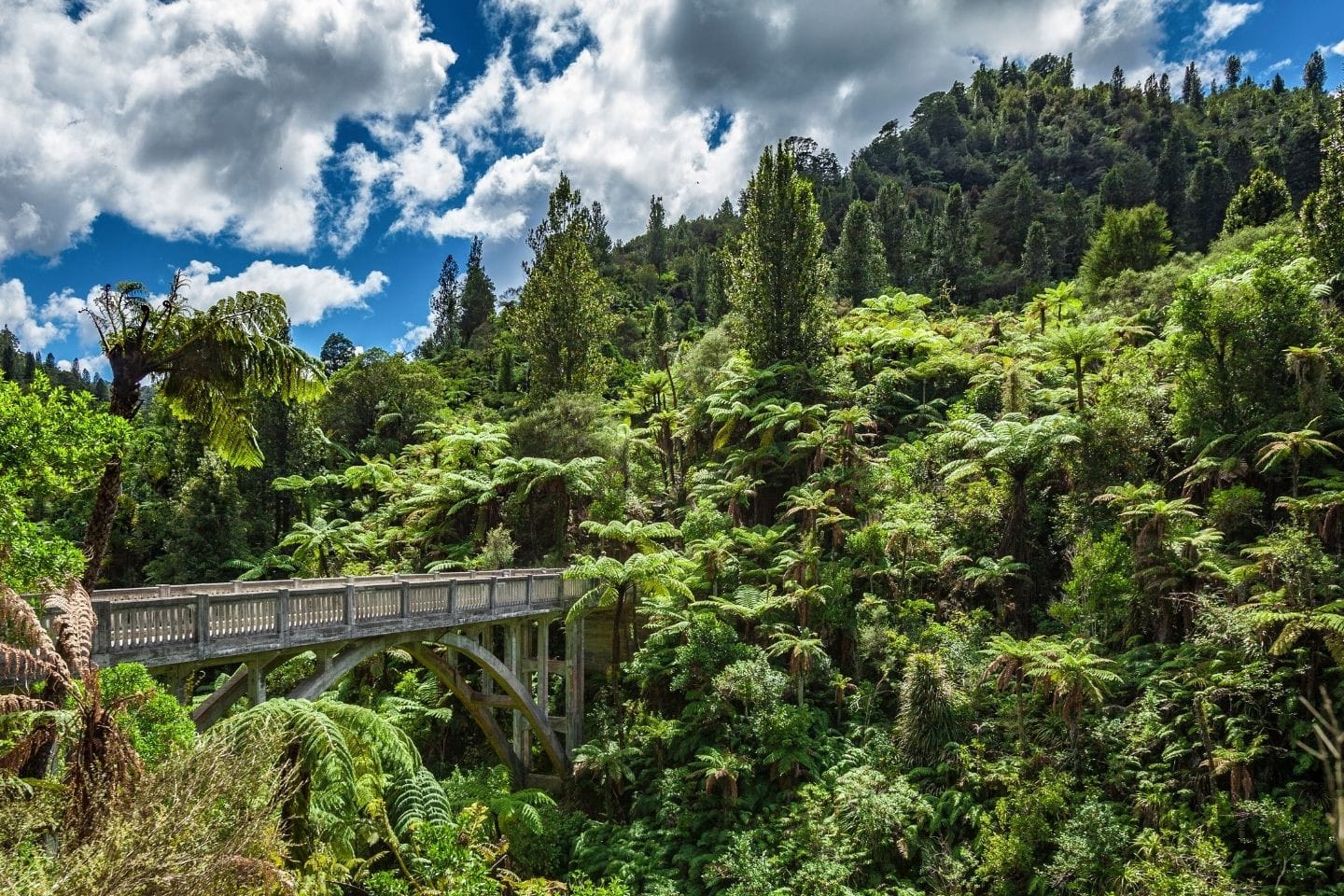 The Bridge to Nowhere in Nationaal Park Whanganui op het Noordereiland van Nieuw-Zeelanddoemt uit het niets op en leidt zoals de naam al doet vermoeden nergens naartoe. De betonnen brug over een kloof werd in 1936 gebouwd voor lokale boeren, maar slechts zes jaar gebruikt omdat de grond onvruchtbaar bleek. De natuur heroverde het land en — tot op de dag van vandaag — de harten van hikers, die op de tweedaagse Mangapurua Trail bovenal van het loofbos en spirituele Maoriplekken genieten.