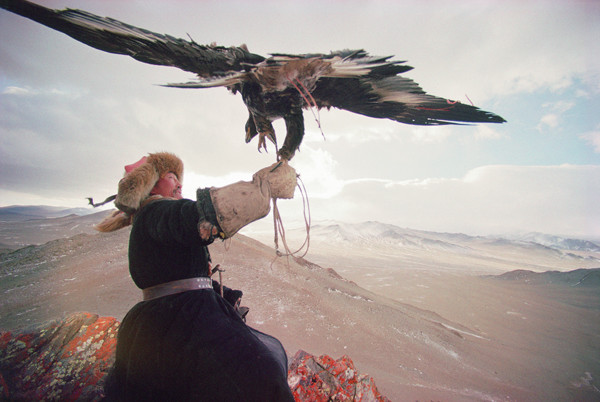 In Columbus editie 19 vind je op pagina 14 het indrukwekkende beeld uit het Survival International fotoboek We are one (Uitgeverij het Spectrum). Het beeld toont een Kazach berkutchy (adelaarjager), die zijn leven heeft geriskeerd om een arendsjong te stelen uit zijn nest. De vogel wordt ingezet om voor zijn eigenaar te jagen.