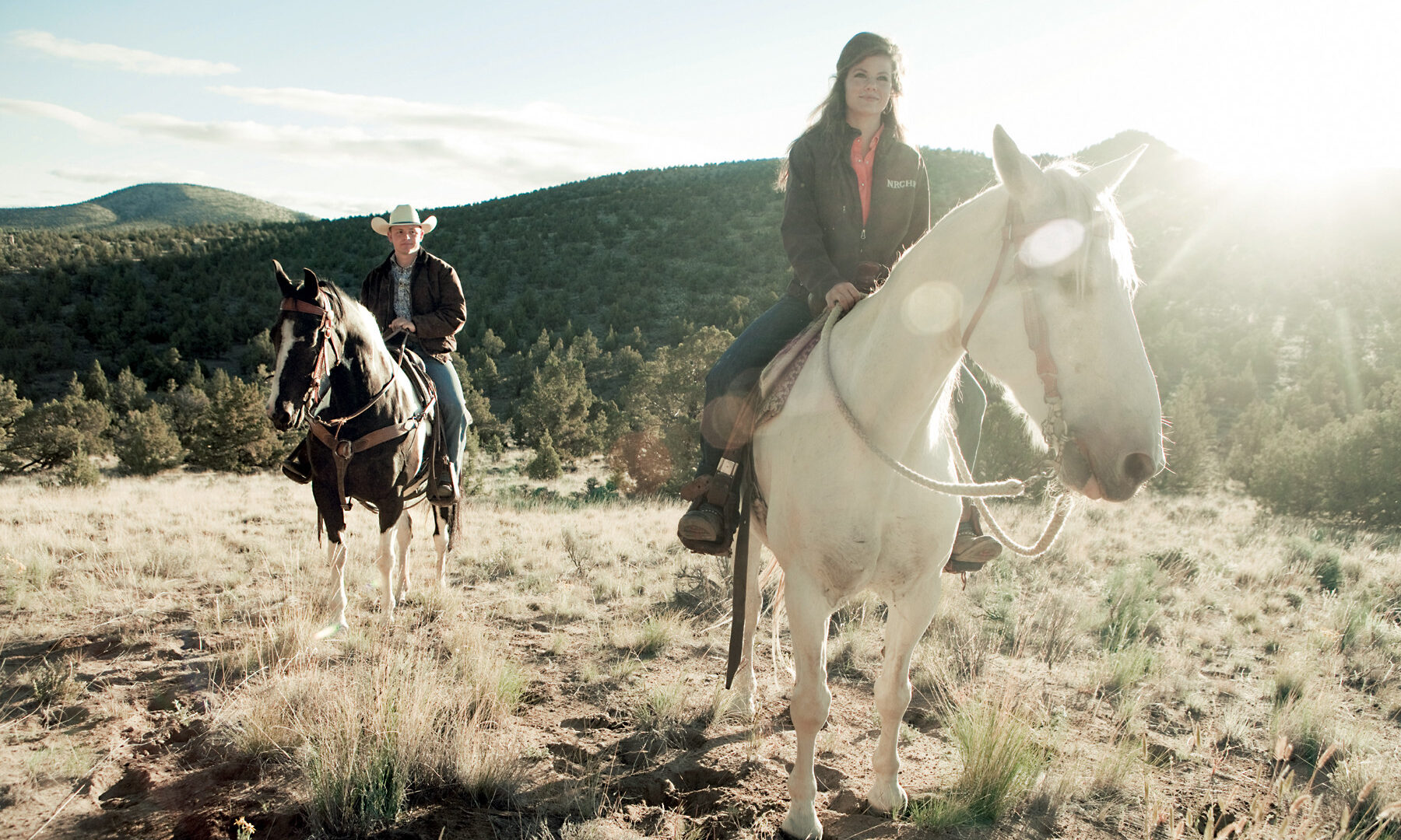 Het was liefde op het eerste gezicht toen Jessie (Jessica) en Harrison, beiden fervente paardrijders en rodeohelden, elkaar enkele jaren geleden ontmoetten. Sindsdien zijn de twee onafscheidelijk en verzorgen ze paardentochten vanuit de Brasada Ranch. De ranch is de uitvalsbasis voor de Oregon Badlands, een steppeachtig gebied (high desert) waar de aarde op veel plekken gebarsten is en enkel aan oude jeneverbessen en alsem voeding biedt. In de verte schitteren de bergen van de Cascades-keten, en in het bijzonder de besneeuwde vulkanische Three Sisters, in de zon. Op een Clydesdale-paard – herkenbaar aan zijn harige hoeven – kom je ook langs wilde woestijnbloemen, droge rivierbeddingen en oude rotstekeningen van indianen. Startpunt trail: 43° 95′ 39” noord, 121° 01′ 48” west. Echte diehards gaan nog een stapje verder en volgen de Oregon Desert Trail, een pad voor hikers en ruiters dat momenteel wordt aangelegd en van het plaatsje Bend naar de grens met de staat Idaho, ruim duizend kilometer verderop, moet leiden.