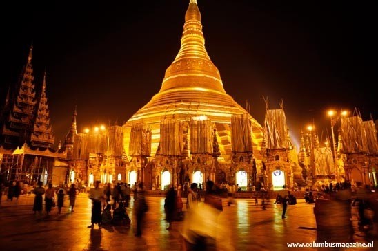 De Shwedagon pagode is de grootste tempel van Myanmar. De 98 meter hoge pagode is bedekt met 50.000 kilo bladgoud. Volgens eeuwenoude verhalen worden in de pagode acht haren bewaard van de laatste Boeddha.