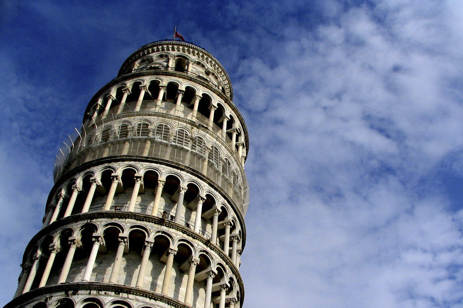 De toren van Pisa werd in drie stappen gebouwd, verspreid over een periode van tweehonderd jaar. De bouw van de toren begon in 1173. Na de bouw van de derde verdieping in vijf jaar later, ging hij scheef staan. Daarna lag het werk ongeveer honderd jaar stil. Dat was maar goed ook, want zo werd de grond samengedrukt en dus steviger. Was de toren in een keer afgebouwd, dan was hij zeker omgevallen. In 1990 werd de toren uit veiligheidsoverwegingen gesloten.
