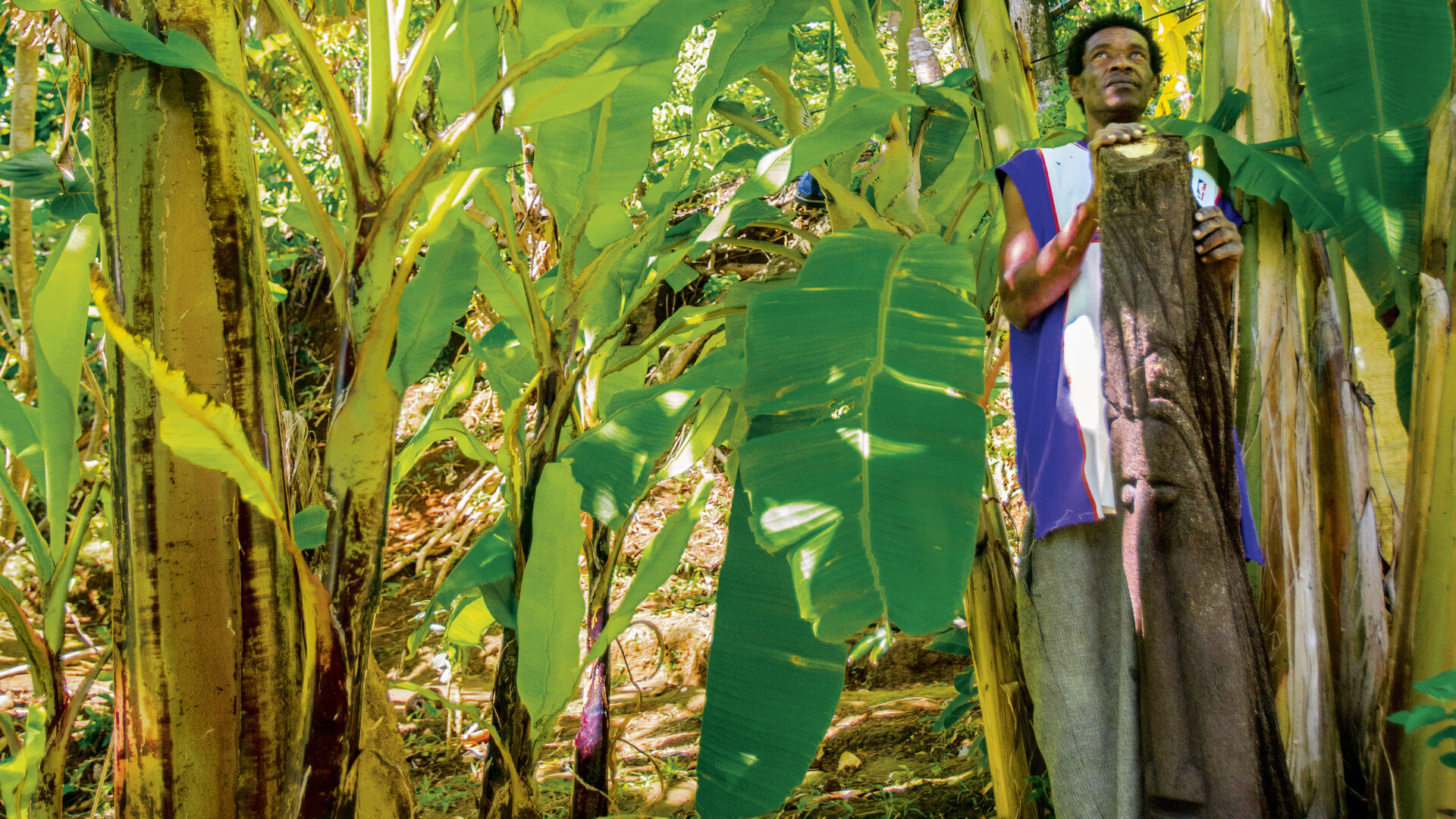 Op eilanden in de Grote Oceaan en de Caribische Zee wordt indrukwekkende houtsnijkunst gemaakt van de boomvaren. Op het Caribische eiland Dominica zijn de bossen bezaaid met deze bijzondere boomsoort. Van bovenaf lijkt de boomvaren op een gewone varen, maar er zit een stam onder die tot wel twintig meter lang is. Bijzonder is de structuur van de onderkant van de stam; deze is ontstaan doordat de bladstelen mettertijd in elkaar zijn gedraaid of gevlochten. Het lijkt op een warrige knot zwart en bruin haar en is opvallend zacht. Dat maakt het geliefd materiaal voor houtsnijwerkers. In veel gevallen hakken zij slechts de bovenkant van de boomvaren af om de stam ter plekke te bewerken − de boom blijft dus in de grond staan. Een mooier reissouvenir uit Dominica is nauwelijks denkbaar. We gaan dan ook op pad om de fraaiste staaltjes houtsnijwerk te vinden. Aan de oostkust valt ons oog op een rijtje enorme beelden die van de boomvaren zijn gemaakt. Maar bij navraag blijken deze niet te koop en we vervolgen onze weg.