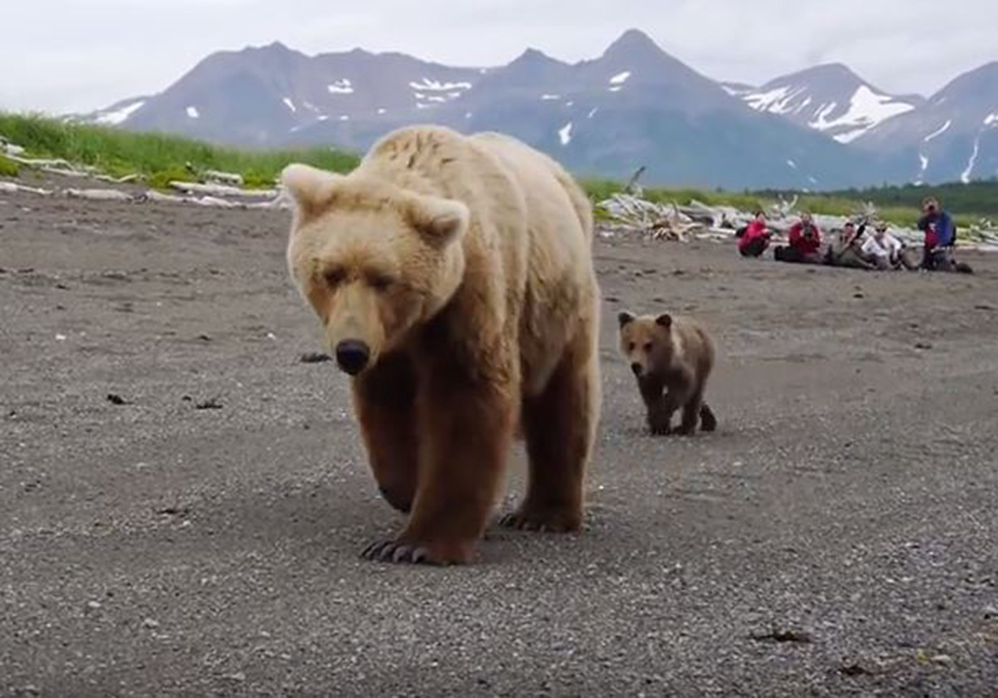 Wauw! Deze toeristen in het Katmai National Park in Alaska komen bizar dichtbij een wilde bruine beer en haar twee jongen! Normaal gesproken levensgevaarlijk, want beren staan erom bekend erg beschermend te zijn als het om hun jongen gaat. DO NOT try this at home dus. Het filmpje zelf wordt er echter niet minder spectaculair door…