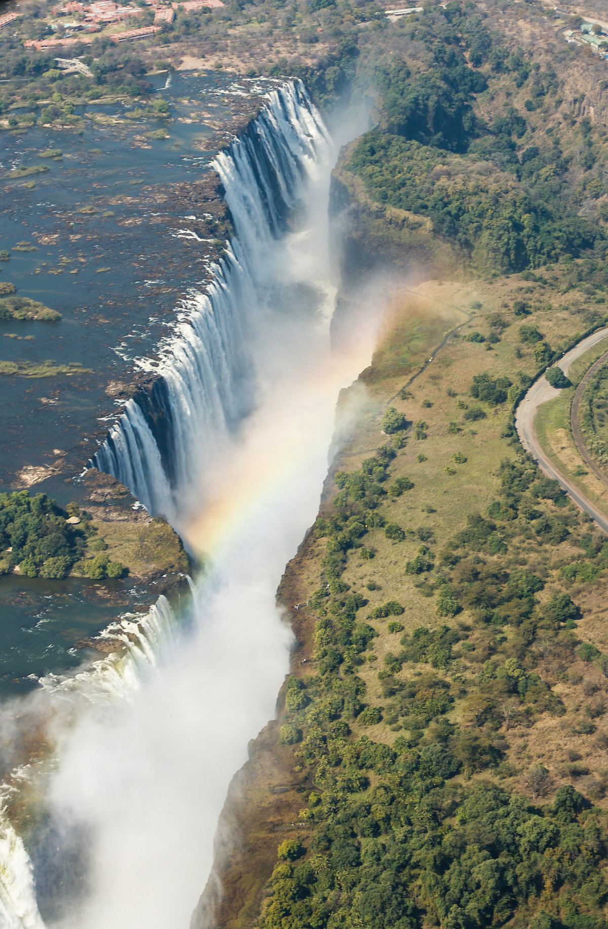De Victoria Waterval ligt op de grens van Zimbabwe en Zambia. Deze waterval is ongeveer 106 meter lang en per minuut valt er 500 miljoen liter water over de rotswand. Het is niet alleen een trekpleister voor toeristen, maar ook voor de vele wilde dieren die hier water drinken óf een verfrissende duik nemen.