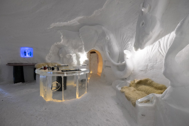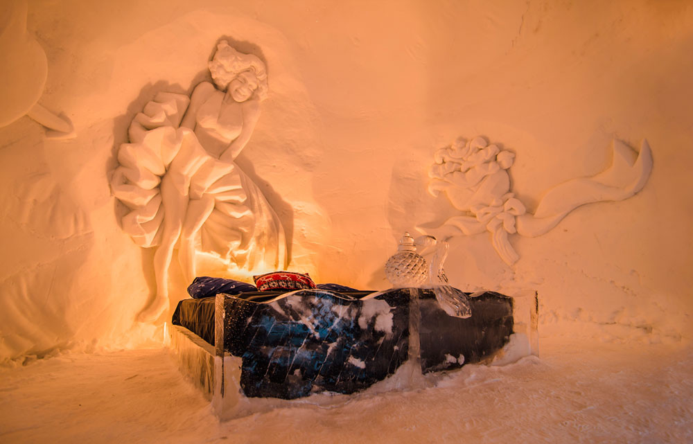 Als de winter weer in aantocht is steken lokale ijskunstenaars hun handen uit de mouwen om de meest fantastische sculpturen op te trekken in het hotel. Dit ijshotel is bij uitstek geschikt voor gezinnen met kinderen, die zich kunnen vermaken in de indoorijsspeeltuin.