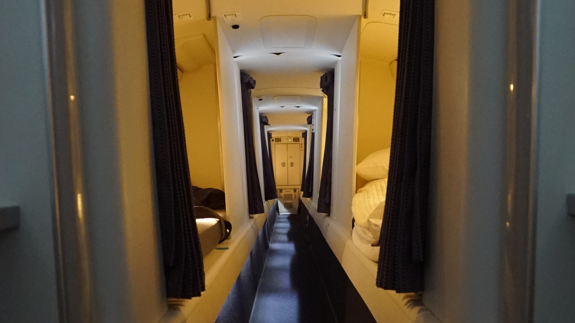 Zo’n vlucht van Amsterdam naar Australië of Australië naar Los Angeles wordt gezien als een ultra-long haul-vlucht, een vlucht van 15 uur of langer. Tijdens een dergelijke vlucht is het belangrijk dat het personeel fris en scherp blijft. Om dit te bewerkstelligen doen ze om beurten een dutje van ongeveer vier uur in speciaal ingerichte slaapcompartimenten, ook wel Crew Rest Compartments (CRCs). In de populaire Boeing 777 en 787 bevinden deze twee vertrekken zich boven de business class aan de voorzijde (voor piloten) en economy class aan de achterzijde (voor cabinepersoneel). De slaapgedeeltes zijn uitgerust met bedden en in sommige gevallen een entertainmentsysteem. Dit verschilt sterk per type vliegtuig. De crewleden die een verplicht uiltje knappen nemen zelf een pyjama mee en zetten zelf een wekker.
