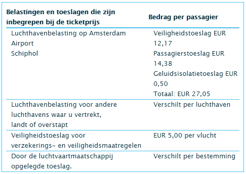 De meeste luchthavens zijn bepaald niet transparant over de samenstelling en hoogte van de airport tax. Wat de doorberekende kosten voor een vertrek vanaf of aankomst op kleinere Nederlandse vliegvelden zoals Eindhoven Airport, Rotterdam The Hague Airport, Maastricht Aachen Airport en Groningen Eelde zijn, is daarom niet bekend. De luchthavenbelastingen liggen er echter sowieso lager dan op Schiphol, waar je in 2017 € 27,05 per passagier betaalt. Ter illustratie, een voorbeeld van KLM: