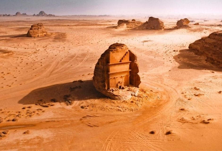Je vindt hier ook het onontdekte alternatief voor Petra. Petra is weliswaar de grootste, maar zeker niet de enige woestijnstad die werd gesticht door de Nabateeërs, een Arabisch volk uit de klassieke oudheid. Ook nabij het Saoedi-Arabische Madain Saleh hakten zij monumentale graftombes uit torenhoge rotspartijen.